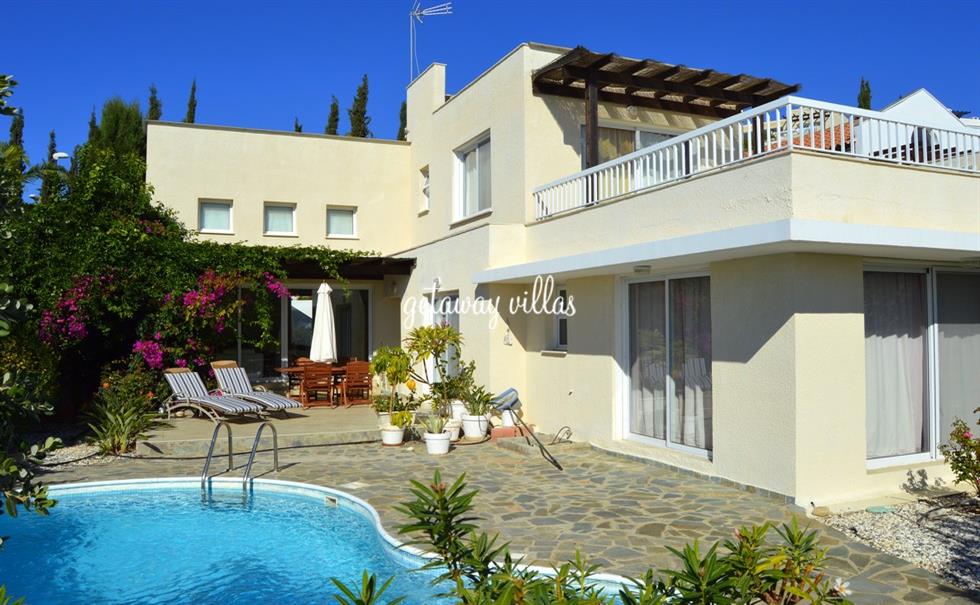 Villa Hermes is a beach holiday villa for rent in Pissouri, Cyprus. This in-resort, golf villa offers 3 bedrooms (sleeps 6) and has a private kidney shaped pool. This romantic getaway villa, is fully equipped for a comfortable home-from-home stay and is located in one of the best positions in beautiful Pissouri Bay, Cyprus. It offers privacy with superb views over the bay and just a short walk distance to the beach, shops and restaurants.